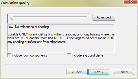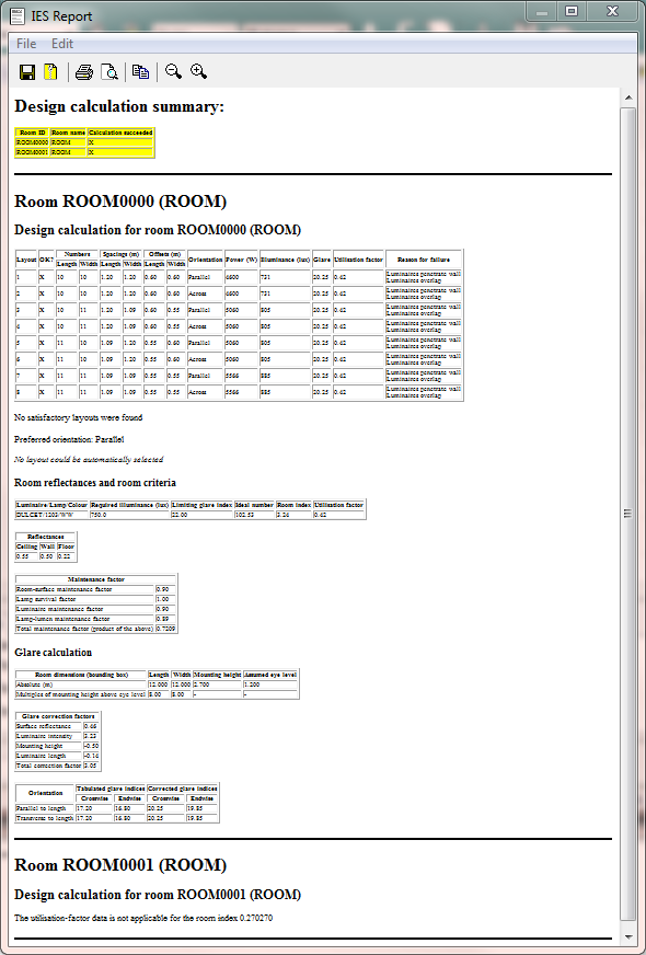 This dialogue box allows you to perform a lumen and glare design. The dialogue box is different depending on how many rooms were selected when the calculation was requested.