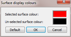 This allows you to change the colours displayed in the Assign surface properties dialogue box. Clicking either colour displays a standard Windows colour picker dialogue box where you can select a different colour. Pressing the Default button restores the default colours.