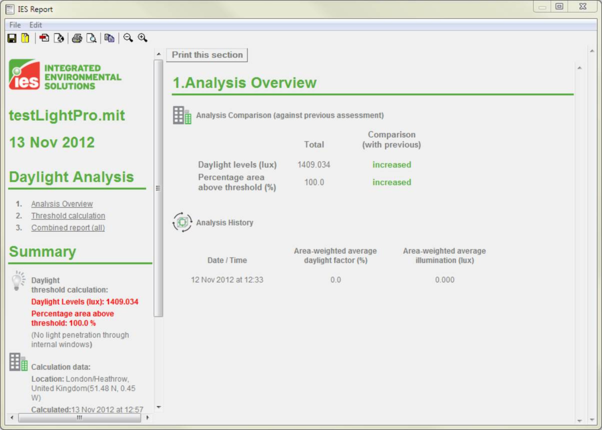 This is IES’ general-purpose version of the Internet Explorer browser, used to show the calculation results. It is displayed when calculations have finished or when you use the Show Results option. Using the File menu or the Print button, you may print the current data, or save to file. Using the Edit menu, all or selected parts of the HTML may be copied to the clipboard ready to be pasted into a document.