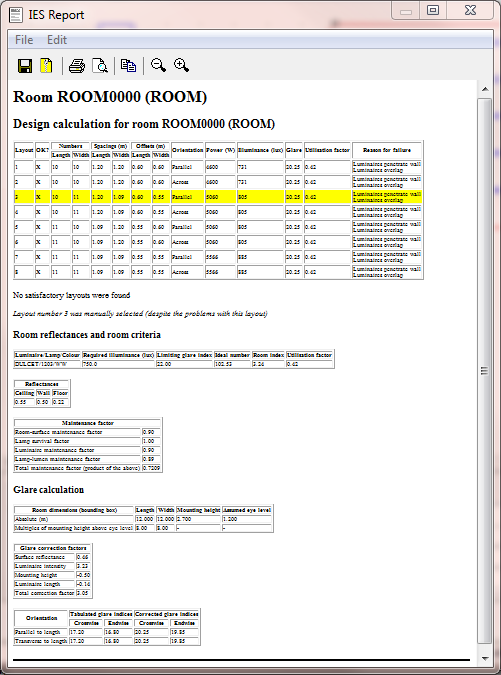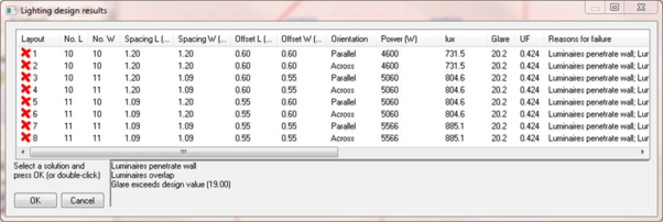 · After a single-room mode calculation only, the Design results dialogue box will be displayed so that you may select one of the possible layouts.