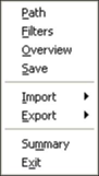 This menu (identical to the one in the Review database dialogue box) allows you to select an option for editing the database path and filters: