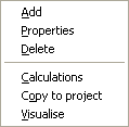 Calculations - Allows you to perform database calculations on the currently-selected luminaire. Displays the Database calculations dialogue box (NB only for luminaires).
