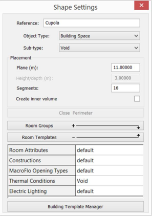 Create inner volume, if ticked, instructs the software to take account of the thickness of the space’s bounding constructions when deriving surface areas and volumes.