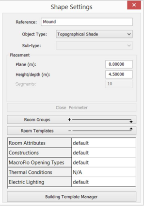 Topographical Shade. A shading object which forms part of the landscape surrounding the building. Adjacent Buildings and Topographical Shades are included in variants of the model created for regulatory compliance and rating analyses.