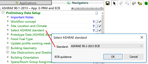 1. Selection of the ECB method for ASHRAE 90.1 Workflow Navigator