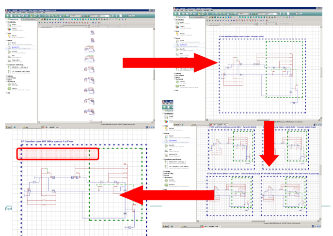 For the below example four copies of baseline system 007 where made & positioned in a tidy fashion on the ApHVAC work space.