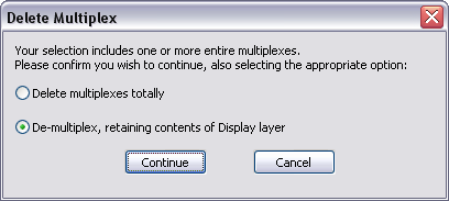 Figure 5 - 10 : When de-multiplexing or deleting a multiplex, a pop-up dialog requires a choice between deleting the entire multiplex and all items within it, or simply de-multiplexing.