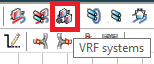 VRF systems are created, edited, and removed via the VRF Systems dialog, accessed by clicking the VRF systems button on the ApacheHVAC toolbar.