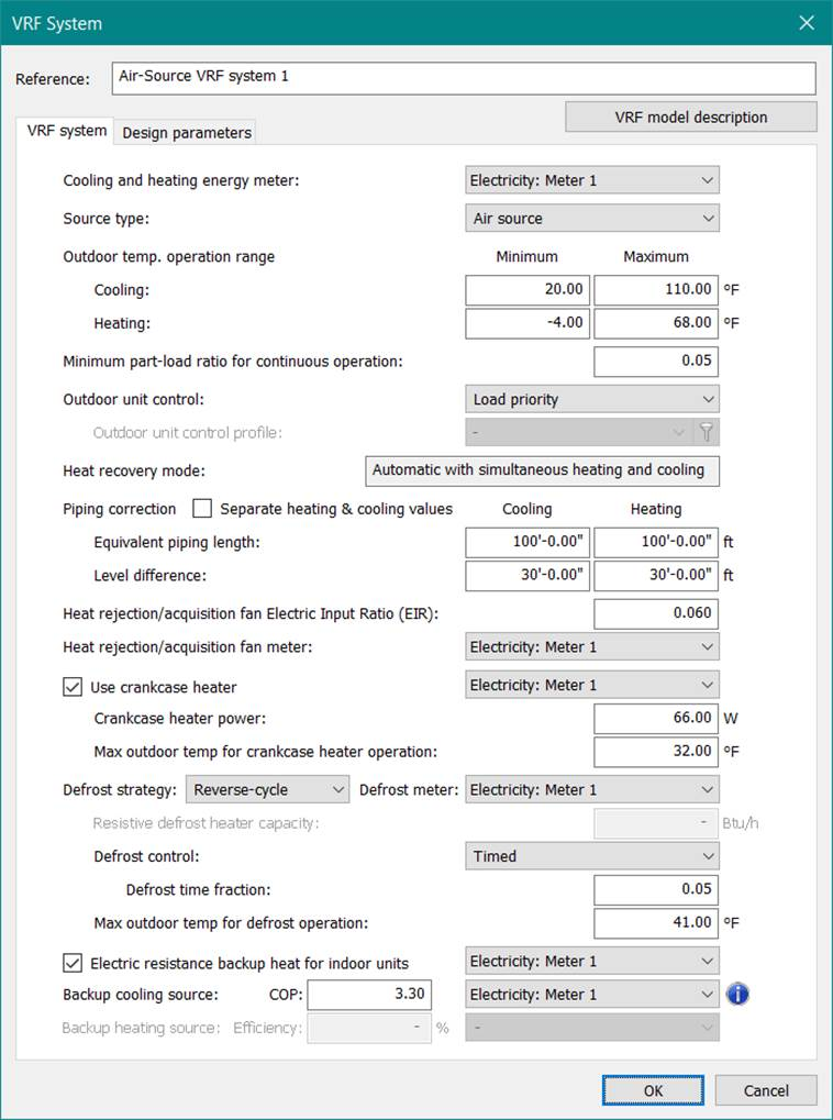 Figure 3-130: VRF system editing dialog, shown for an air-source VRF system