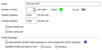 For more details on assigning louvres and windows for HVR units, see the Assignment Guidance section.