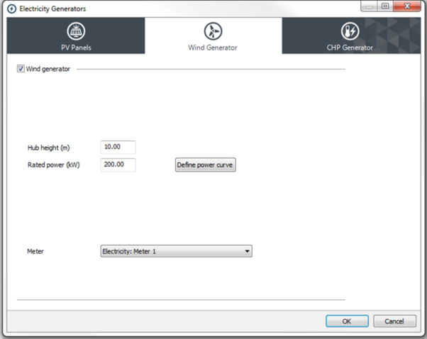 This dialog allows you to describe a wind generator supplying electrical power to the building.