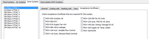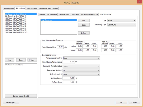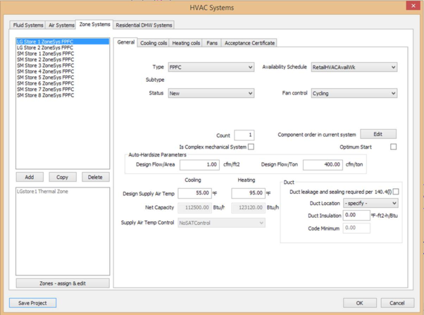 · Type: Select the type of zone system. Options are PTAC, PTHP, FPFC, Baseboard, WSHP, Exhaust, SPVAC, SPVHP.