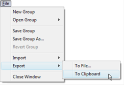 Select the Export to file… or Copy data from all tabs item from the side panel.