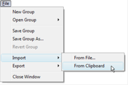 Note: that importing from the clipboard is only enabled if there is text content currently on the clipboard.