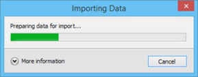 The import process will then begin – a progress window will be displayed if the import process takes more than a second or so, allowing you to get an estimate of how much time the import is likely to take as well as allowing you to cancel the import: