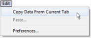 Select the Copy data from current Tab item from the Tabular Space Data Edit menu.