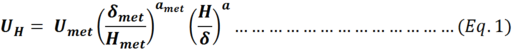 The wind speed UH at height H above the ground is given by: