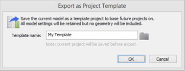 Any active project can be exported for use as a project template to base new projects upon. All the model settings are retained but no geometry will be included in the save.