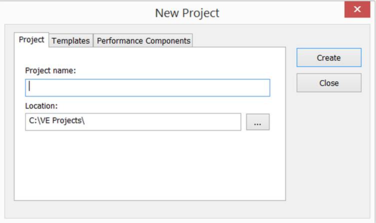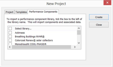 The Performance Components tab provides the means to import selected libraries of performance components into the new project.
