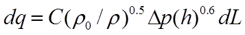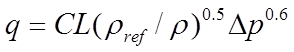 Equation 7 represents a best fit to a large range of experimental data analysed by the Air Infiltration and Ventilation Centre [1]. In this treatment the expression has been generalised on dimensional grounds by introducing a dependence on air density.
