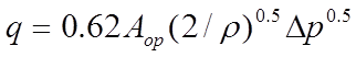 is the pressure difference across the opening (Pa).