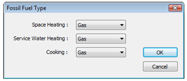 This command allows the user to select the appropriate fuel type per energy use which will be subsequently used in the automatic generation of PRM results reportage in the Results section of the Navigator.