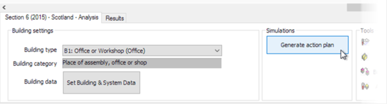 Once the simulation is completed (this may take some time, depending on the size and complexity of your building model) and the results file downloaded, the Action Plan will be generated and the Results tab will be automatically activated:
