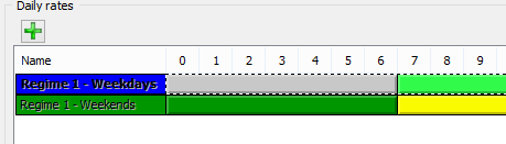Available daily rates will be shown in the bottom half window and can be created and deleted just by clicking the appropriate button. At any time, a daily rate name can be changed by double clicking on it and its colour with the ellipsis button.