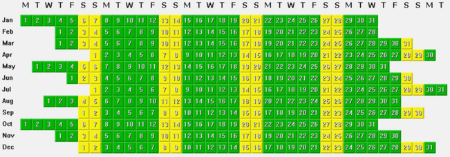 The year stored in the APS file is shown in the calendar with the daily rates assignment for each day.