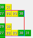 One click on a single day with the left mouse button will assign the selected daily rate to that day. Columns and whole months can be assigned by clicking on the corresponding header letter or month label. Clicking and dragging with the mouse will assign several dates. Performing those actions with the right mouse button will leave the targeted days with no daily rate assigned.
