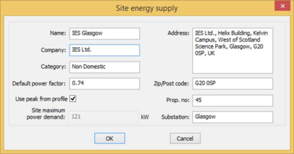 All these fields are only for display purposes with the exception of ‘Default power factor’ and ‘Site maximum power demand’, used for computing.