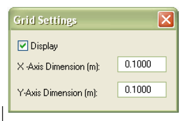 Snapping to the grid when building model geometry ensures the creation of an accurate compact model which enhances accuracy and performance later in the analysis. This option allows the distance between grid points to be set - in both the x and y direction. Checking the grid box in the locks menu will force the drawing tool to snap to the grid. In general it is recommended to use a grid separation distance of 0.1m.