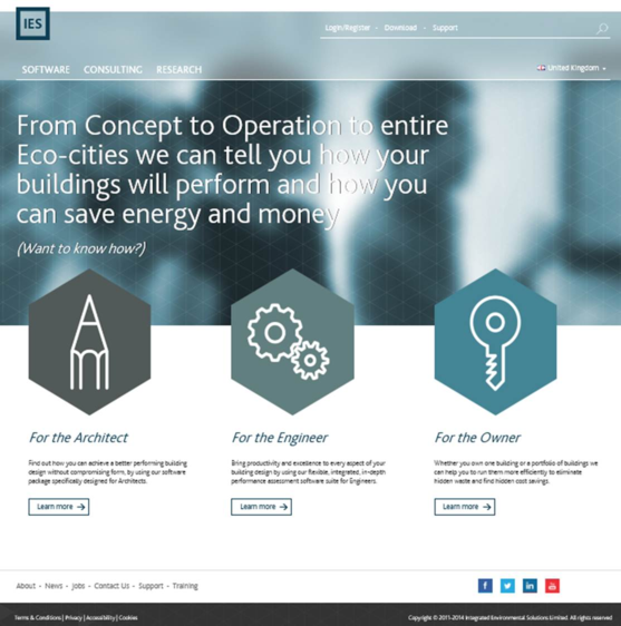 www.iesve.com) where you can access information on IES; these being the software products, IES Consultancy services, the clients area latest news and contact details.