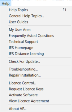 The VE Online Help is accessed via the VE Help menu >> User Guides or else by clicking F1 in any project