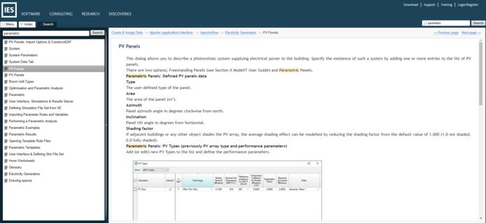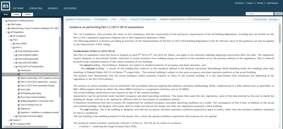 The Menu tab gives a list of every page on the online help, these are sorted into a tree structure and organised so that whatever VE application you are using you can quickly get to the relevant area for the task you are currently working on, whether that is Model geometry (imports from BIM sources, working in ModelIT), Assigning data (Constructions, thermal templates etc) or running any of the range of analyses VE provides (such as Solar analysis, Thermal or Energy analysis or daylighting assessments).