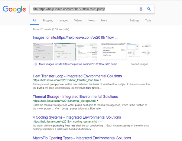 e.g. site:https://help.iesve.com/ve2018/ then enter your search string