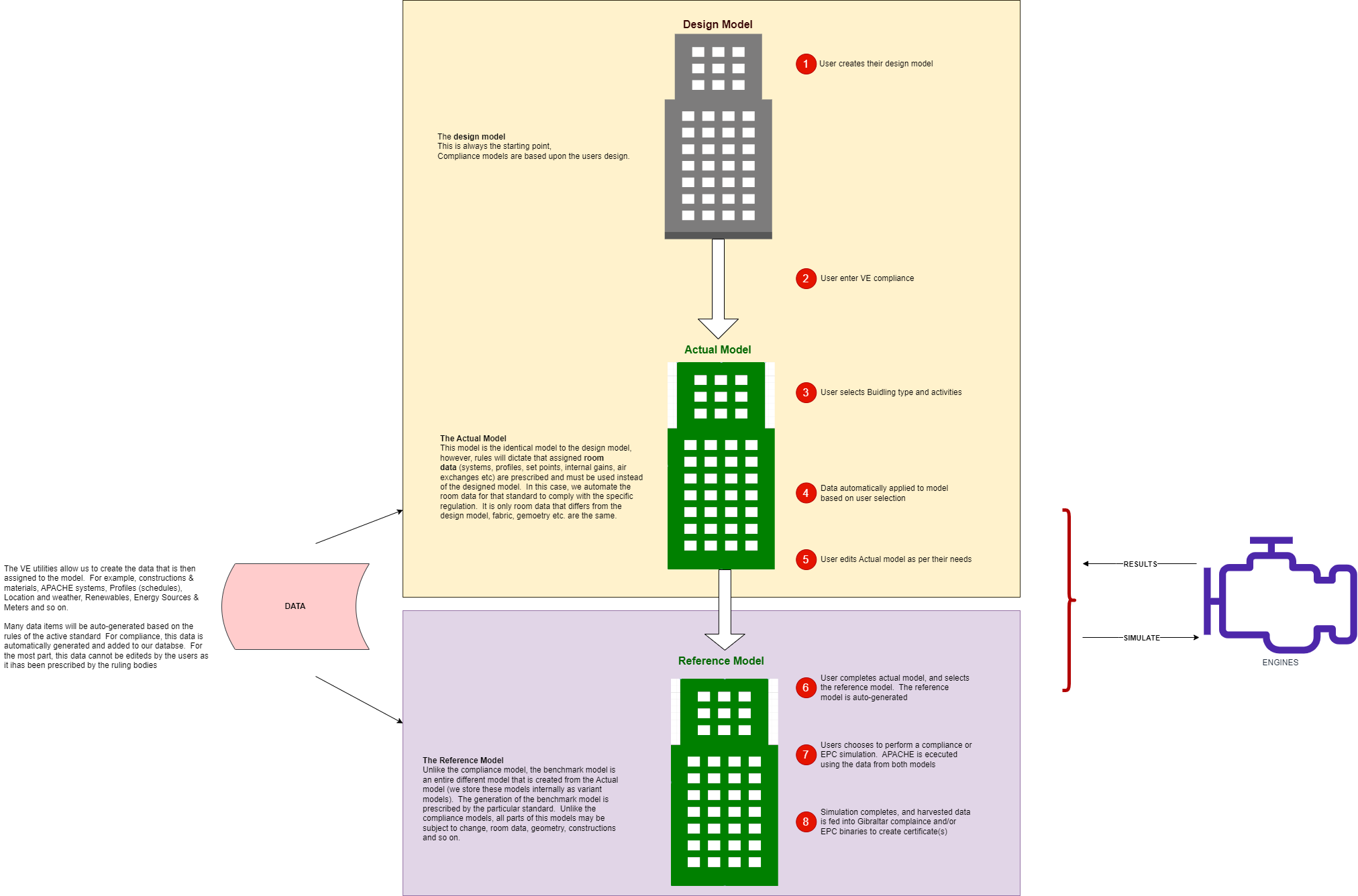 Below is a high level overview diagram depicting Gibraltar Part F (2007) Dynamic Simulation Model (DSM) compliance within the IES Virtual Environment (IESVE). The following sections include more in-depth detail.