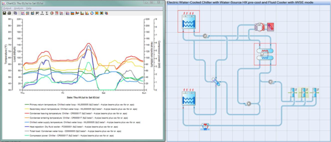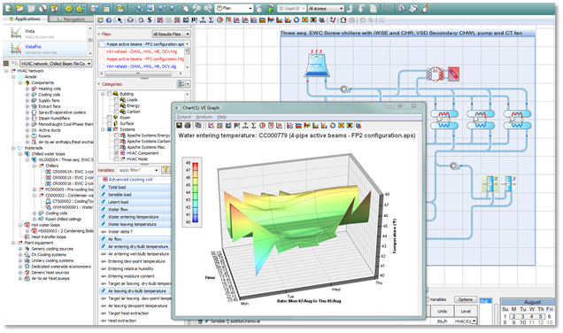 Figure 1 - 7 : Visualizing and comparing waterside HVAC component variables in VistaPro.