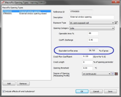 1) Each opening is divided into two parts – flow region and non-flow region. The area of the flow region is equal to the equivalent orifice area of that opening as defined in MacroFlo.