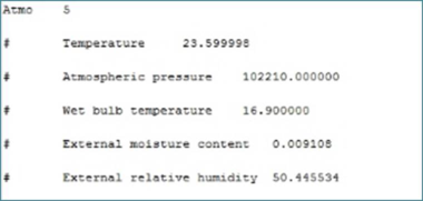 This section lists the atmospheric data for the external conditions for the instance of export of boundary conditions.