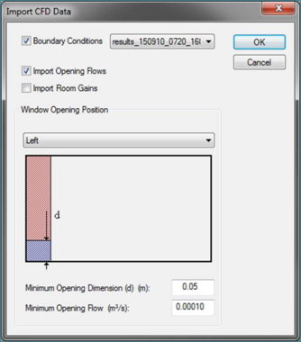 This option allows you to select if you want to automatically include the MacroFlo openings in the MicroFlo analysis. Clicking this option expands the ‘Import CFD Data’ dialogue as in figure 8-5.