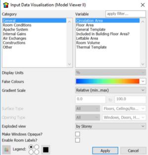 Data assigned to your model can now be visualised as part of the new ‘Input Data Visualisation’ feature in Model Viewer II. The feature allows you to view an assortment of variables from Apache systems to Thermal templates to Internal Gains and much more. A full list of currently viewable data is below.