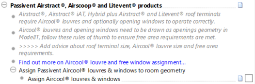 For these components the same workflow as Roof Terminals (without low level inlets) is followed up to step 16; however, these products work in conjunction with room louvres and windows which need to be defined before the placement is finalised.