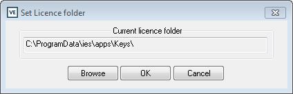 During the installation of the Libraries, a directory by the name of \KEYS is created under your application directory (C:\ProgramData\ies\apps\Keys), which is used to store important IES product information. This directory will store the licences issued to you by IES and cannot be moved after licences have been issued, since this will invalidate the licences. Should you wish to change the location of this directory, or address more advanced licensing issues, please refer to the Software Installation Guide; Network Installation – IES Software Licence Directory.