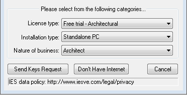 When you open the VE on any client machine, you will be greeted with the IES User Information screen. On this screen there will be a “Request License Keys” button.
