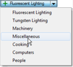 The dialog shows a list of all internal gains that are available in the current project. If you would like to create an internal gain and add it to the list, use the Add button. This button allows you to choose the type of internal gain to be added. Clicking the down arrow on the right hand side of the button will bring up a list of the different types of internal gain. Clicking one of the types in this list will add an internal gain of the selected type. The button will update to show the type of the last added internal gain, this allows you to use the button as a normal button to add an internal gain of the last added type.