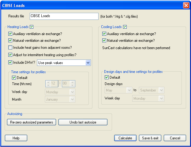 CIBSE Loads (also known as ApacheCalc or CIBSE Heat Loss and Heat Gain) performs heating and cooling load calculations according to the procedures laid down in CIBSE Guide A (1995, 1999, 2001, 2006).