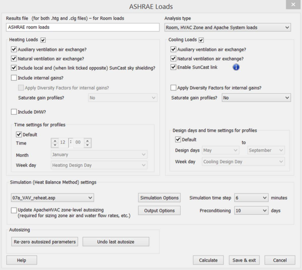 ASHRAE Loads (also known as Apache Loads or ASHRAE Heat Balance Method) performs heating and cooling load calculations according to the ASHRAE Heat Balance Method, as described in the ASHRAE Handbook of Fundamentals.