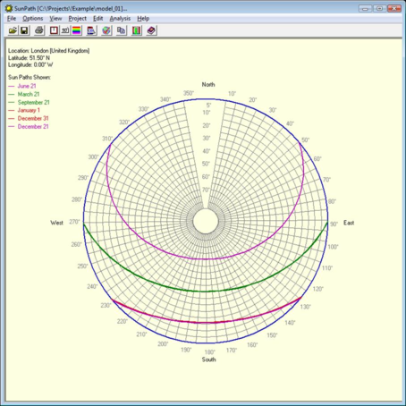 SunPath is used to show a stereographic projection of the Sun's path across the sky.