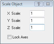 Use this command to scale the selected objects in any 2D view. The "Scale Object" dialogue box will appear, in which you can enter the scale factors for the x, y and z axes.